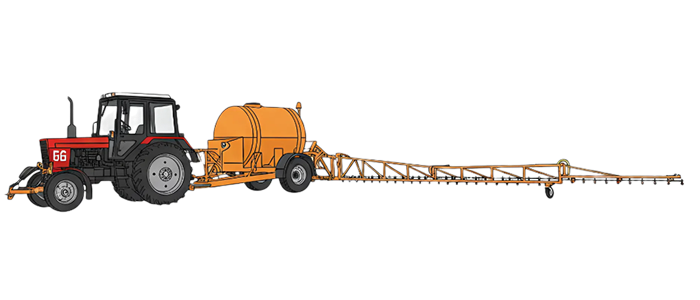 размах штанг 22,5м позволяет обрабатывать полосу шириной 45м за один проход туда-обратно